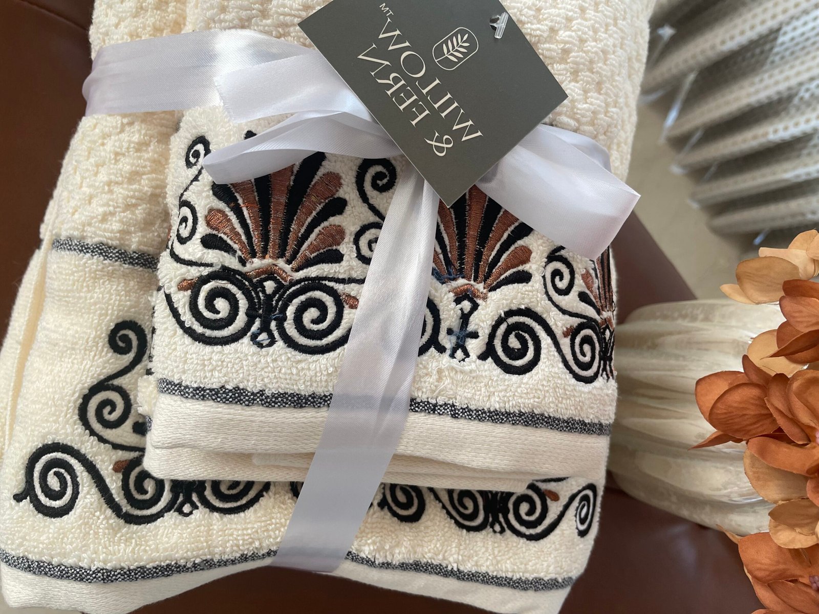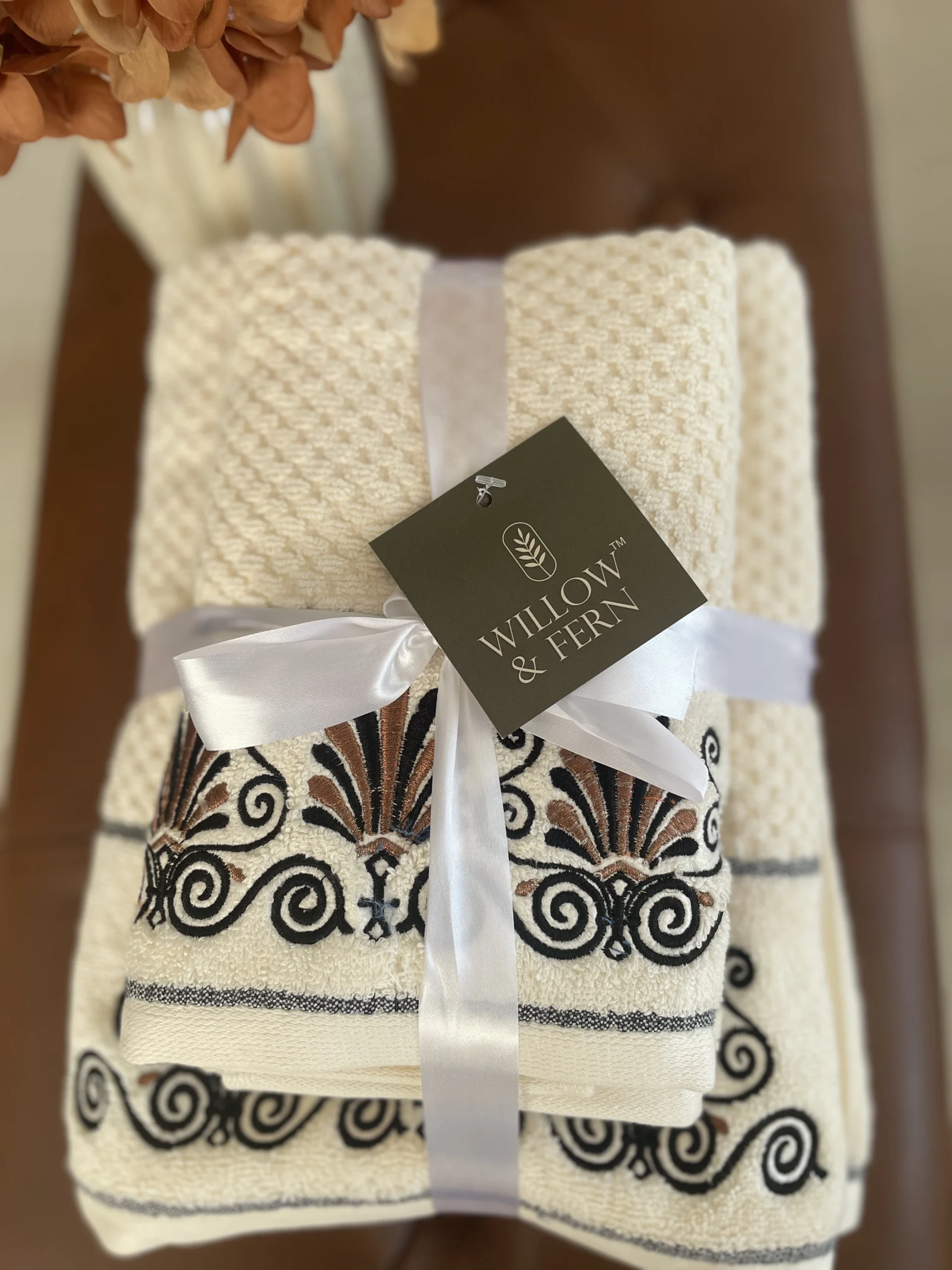 absorbency and gentle on skin, making every use a SPA like experience. The elegant embroidery
