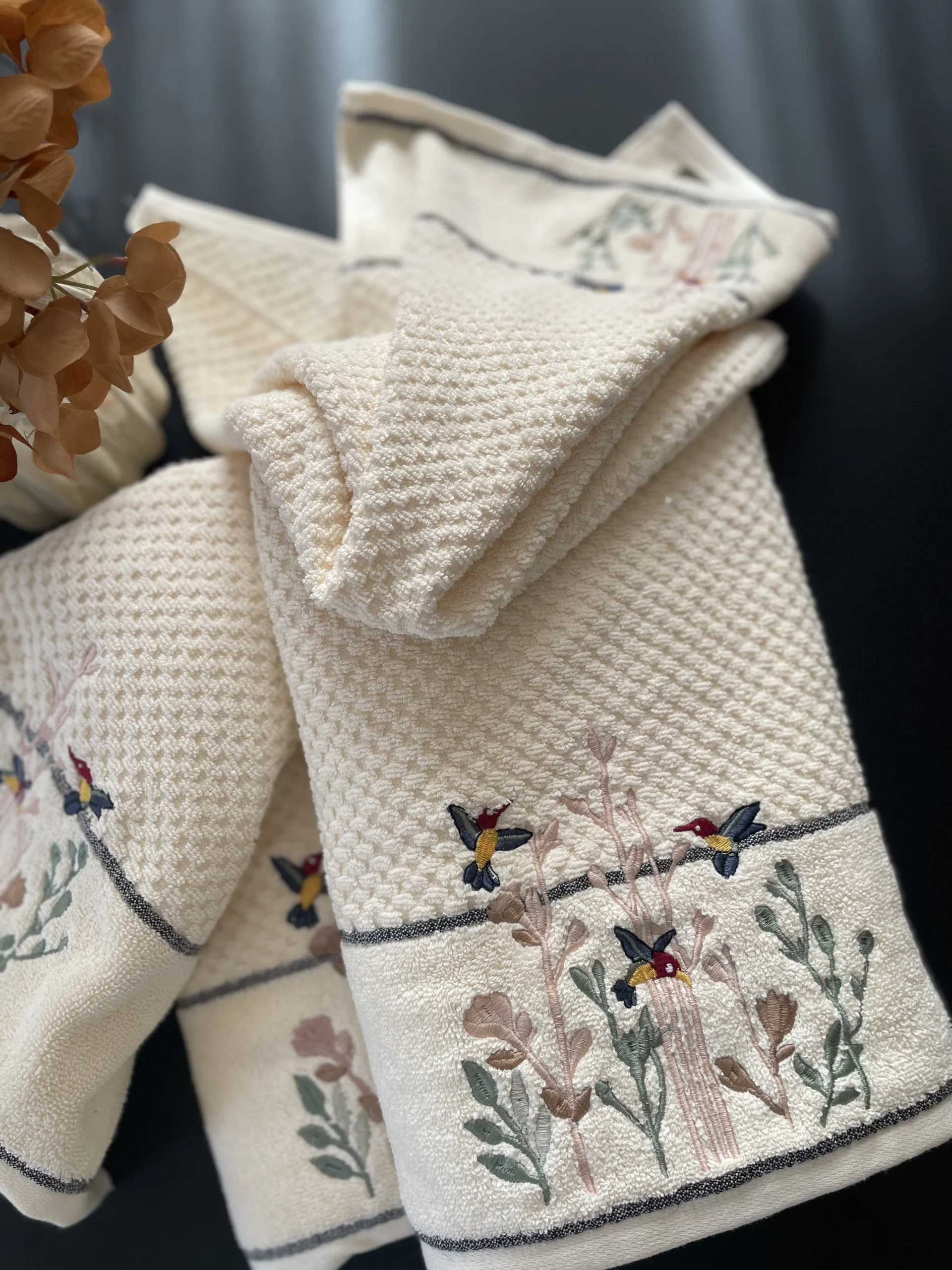 absorbency and gentle on skin, making every use a SPA like experience. The elegant embroidery